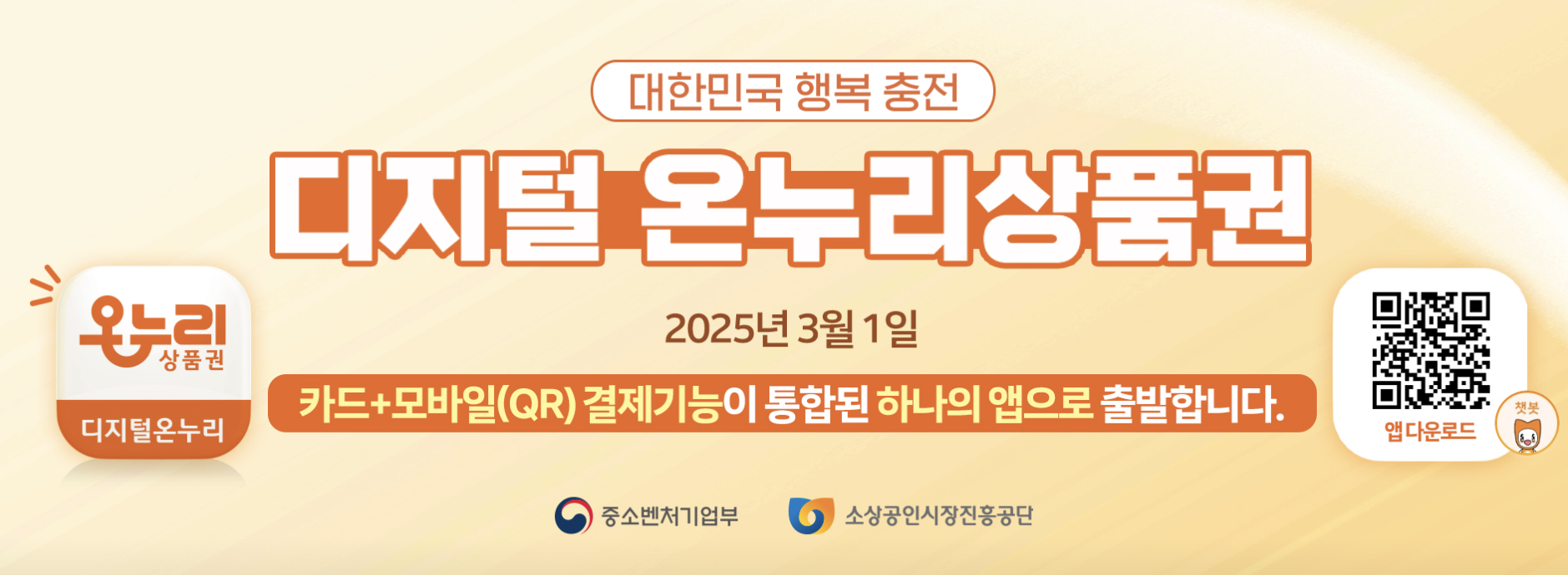 2025년 3월 1일부터 카드형과 모바일(QR) 결제 기능이 통합된 '디지털 온누리상품권' 앱이 출시되어, 하나의 앱에서 모든 형태의 온누리상품권을 관리하고 사용할 수 있게 되었습니다.